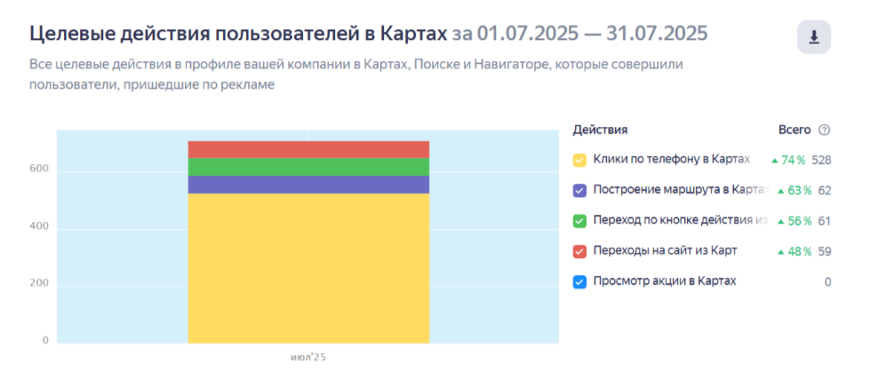 - 700–900 целевых действий на Картах ежемесячно.